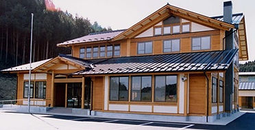 暖房にも薪ストーブを採用するなど森林組合らしい建物としています。